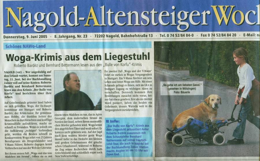 Krimis aus dem Liegestuhl Roberto Bardéz und Bernhard Bettermann lesen aus den „Bulle von Korfu“ Krimis (vat)